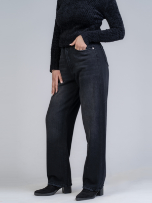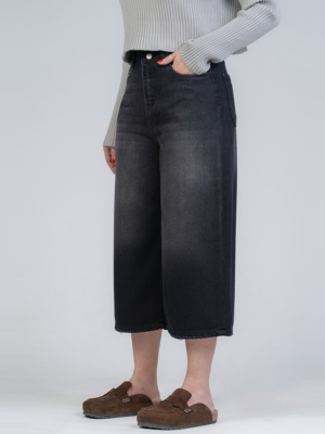 شلوار جین کراپ واید لگ قد 85 مشکی کد 22312
