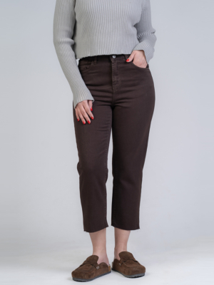 شلوار کتان استریت قد 90 دمپا کات قهوه ای کد 22672