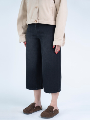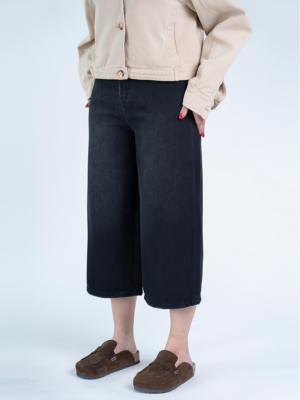 شلوار جین کراپ واید لگ قد 85 مشکی کد 21783