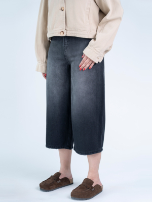 شلوار جین کراپ واید لگ قد 85 مشکی کد 21786