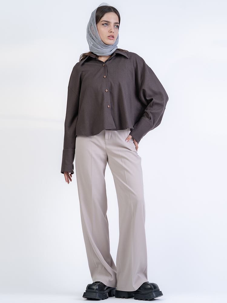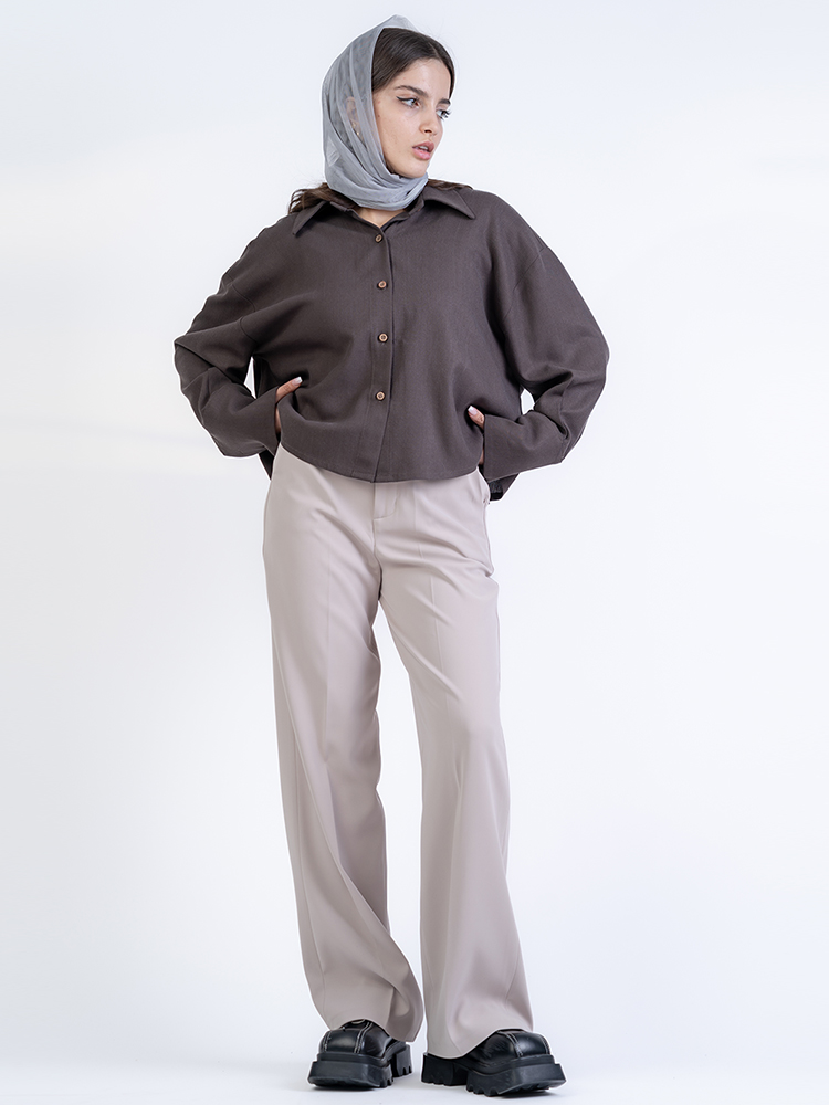 قد 110 این مدل باعث می‌شود فرم پا کشیده‌تر و استایل منظم‌تر دیده شود. فرم بگ و آزاد آن نیز راحتی کامل و حس آزادی در حرکت را فراهم می‌کند، بدون اینکه ظاهر لباس از حالت مرتب خارج شود.