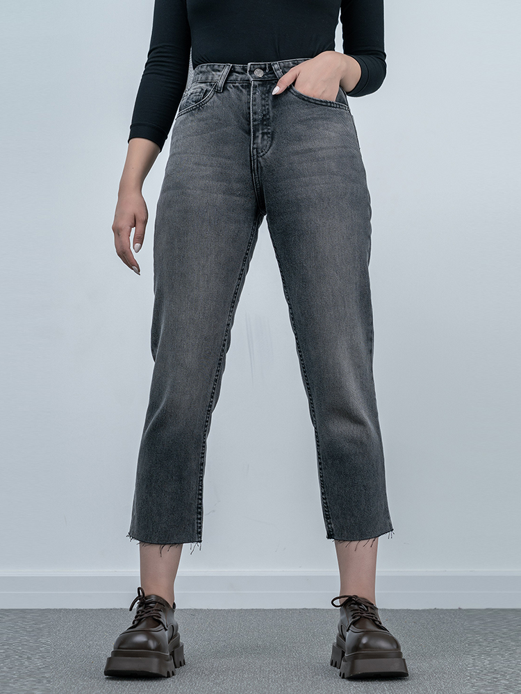 شلوار جین استریت قد 90 دمپا کات مشکی کد 19402