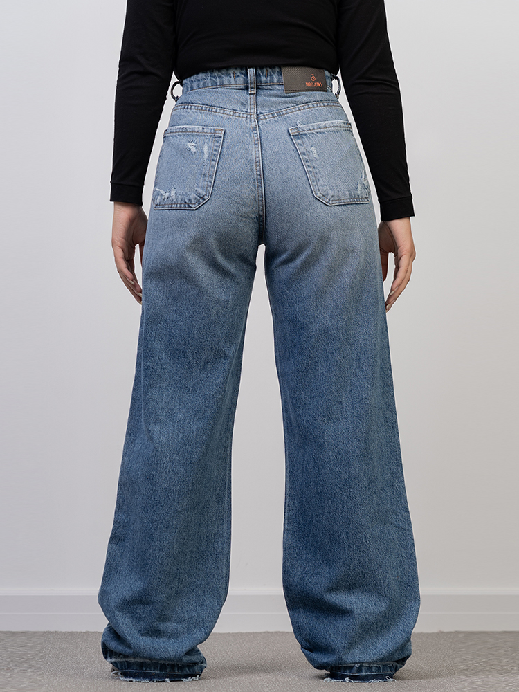 شلوار جین بگ قد 110 دمپا بشکاف کد 21178