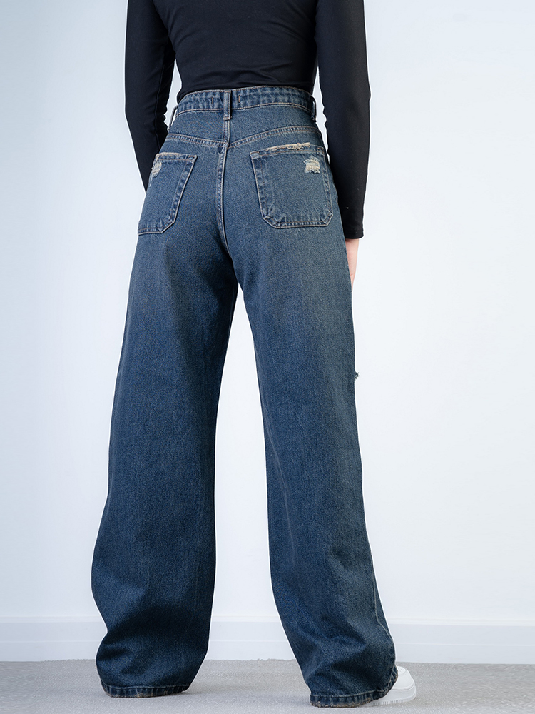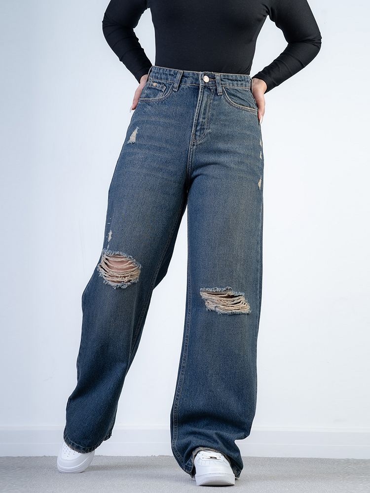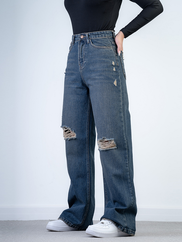 شلوار جین بگ قد 110 دمپا بشکاف کد 21577