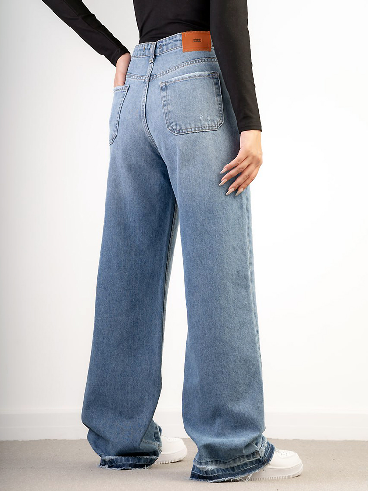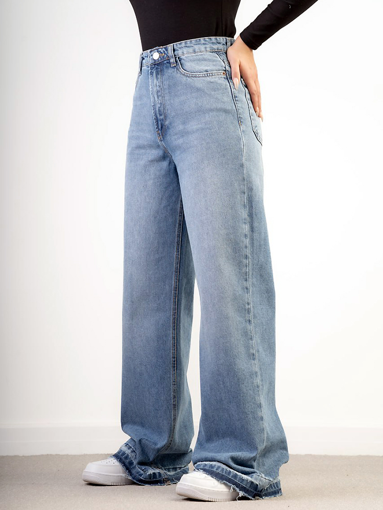 جنس جین باکیفیت و خوشفرم این مدل باعث میشود در طول روز احساس سبکی و راحتی داشته باشید. جزئیات ظریفی مثل شکاف در قسمت دمپا، ظاهر این شلوار را از مدلهای معمولی متمایز میکند و جلوهای مدرن و جسورانه به آن میدهد.