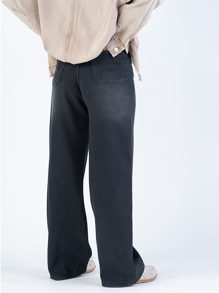 شلوار جین بگ مشکی قد 110 کد 21775 با فرم آزاد و طراحی مینیمال، انتخابی مناسب برای استایل‌های روزمره و شهری است. این مدل ظاهر مرتب و یکدستی به استایل می‌دهد.
