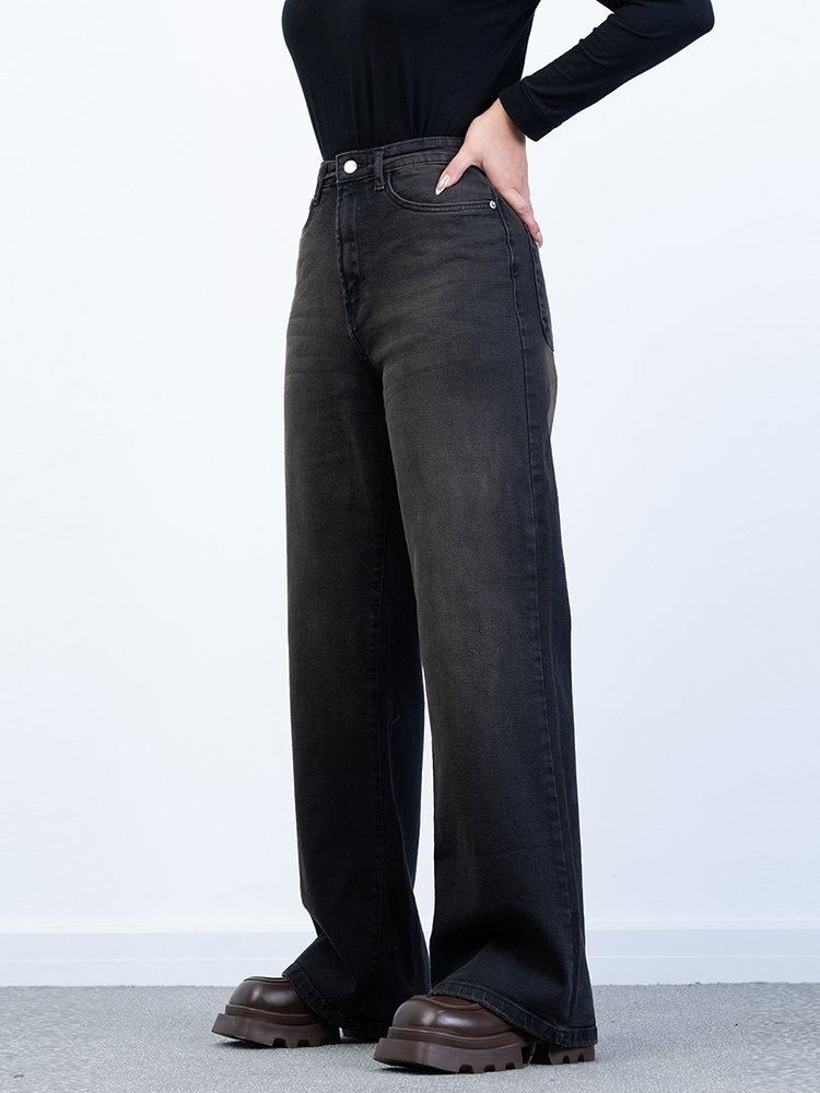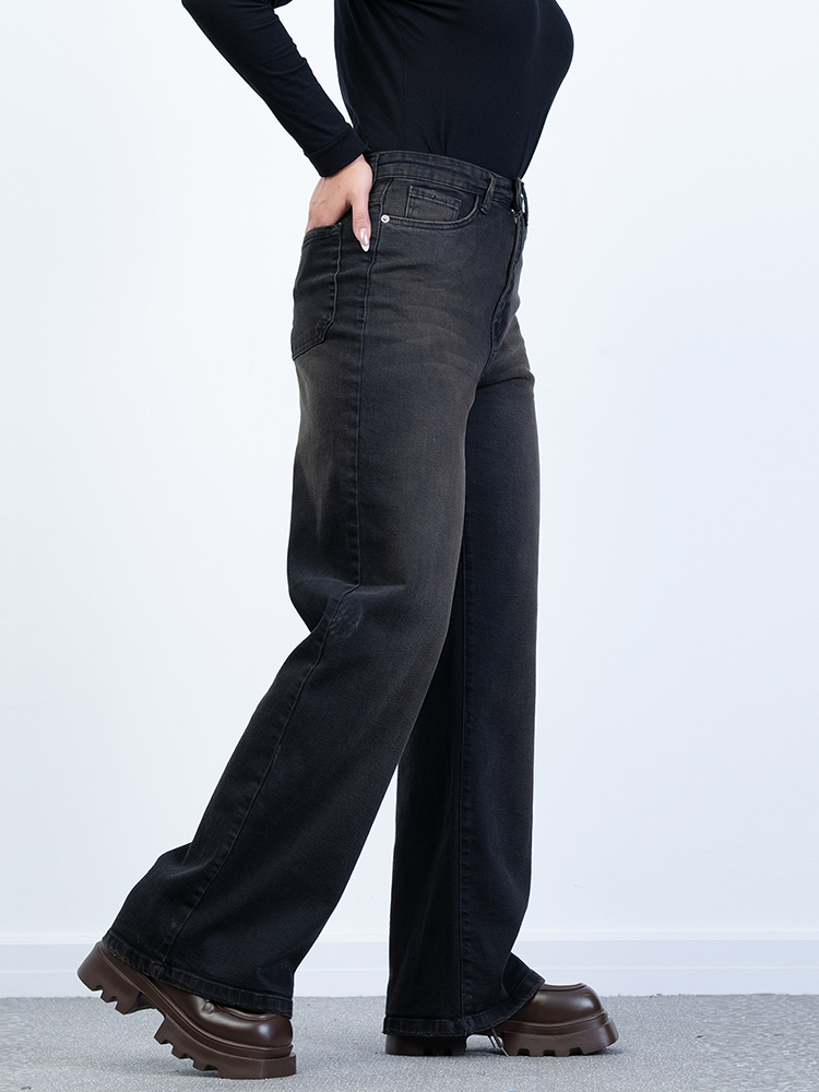 شلوار جین بگ قد 110 مشکی کم کش کد 21496