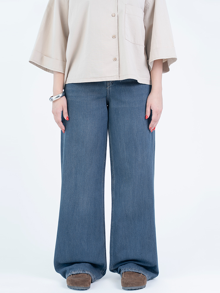 این شلوار جین با فیت بگ و ایستایی متعادل، هم راحتی کامل دارد و هم فرم زیبایی روی بدن ایجاد میکند. بهراحتی با کت جین یا شومیز ست میشود و یک ترکیب امروزی میسازد.