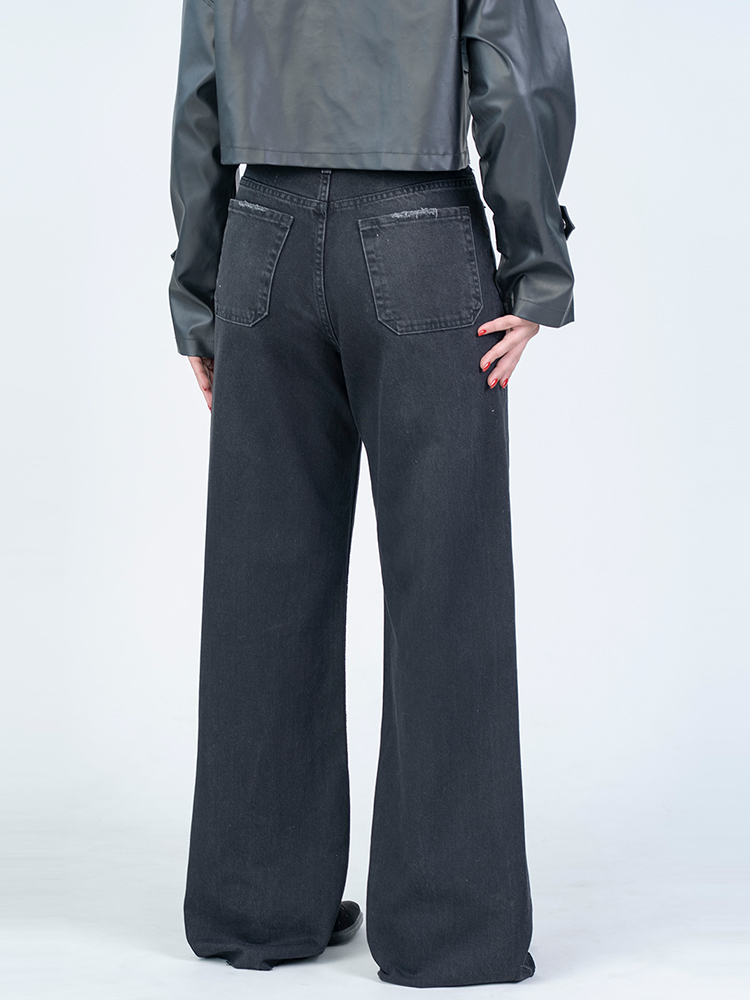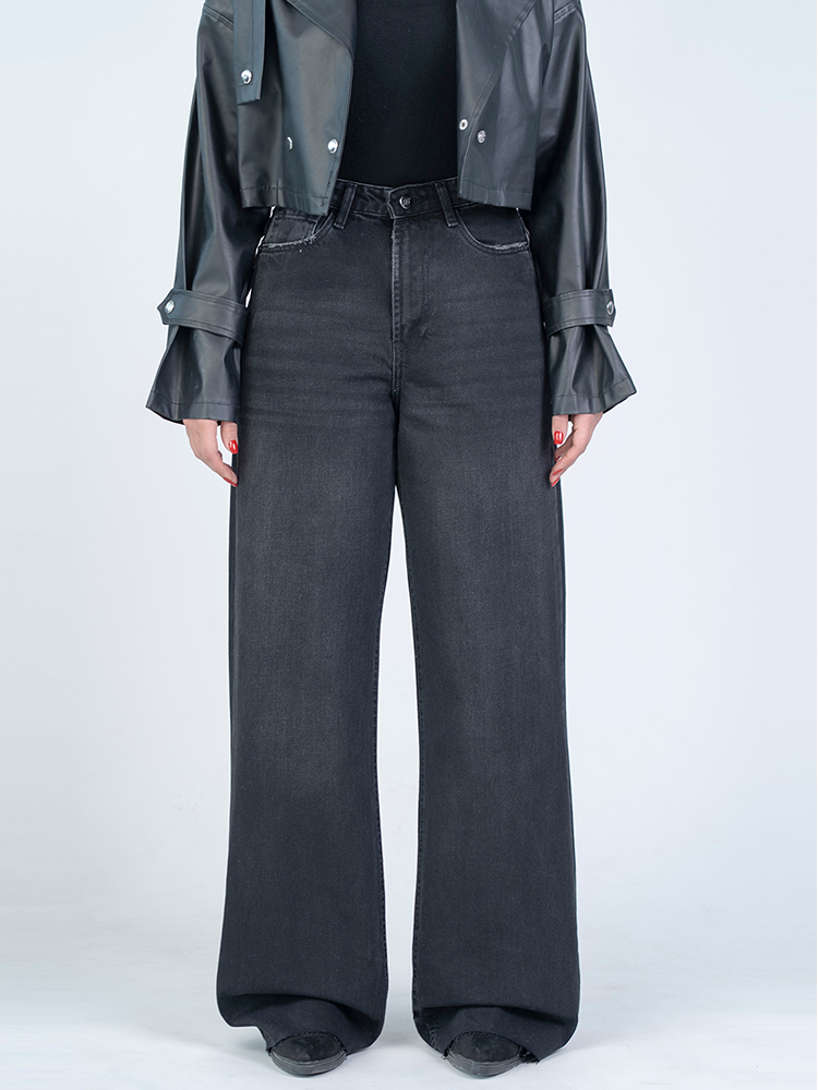 شلوار جین بگ قد 115 دمپا کات مشکی کد 22724