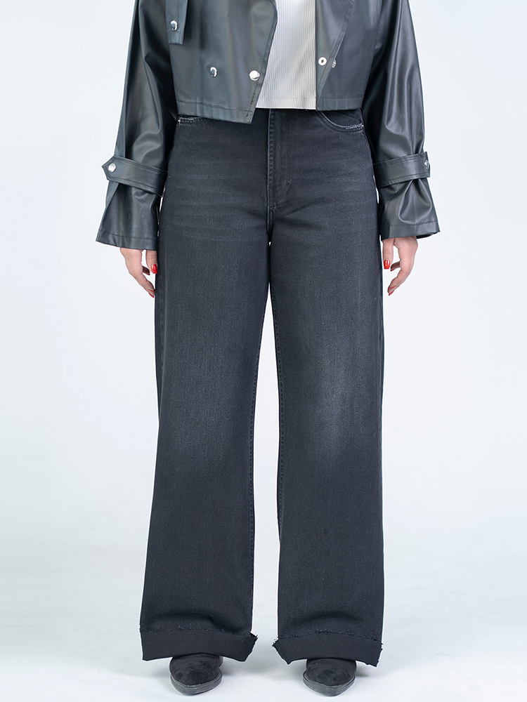 شلوار جین بگ قد 115 دمپا کات مشکی کد 22725