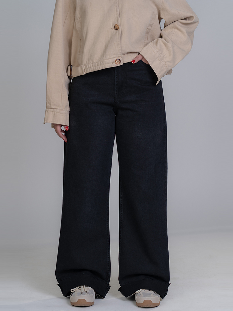 شلوار جین بگ قد 115 دمپا کات مشکی کد 22726