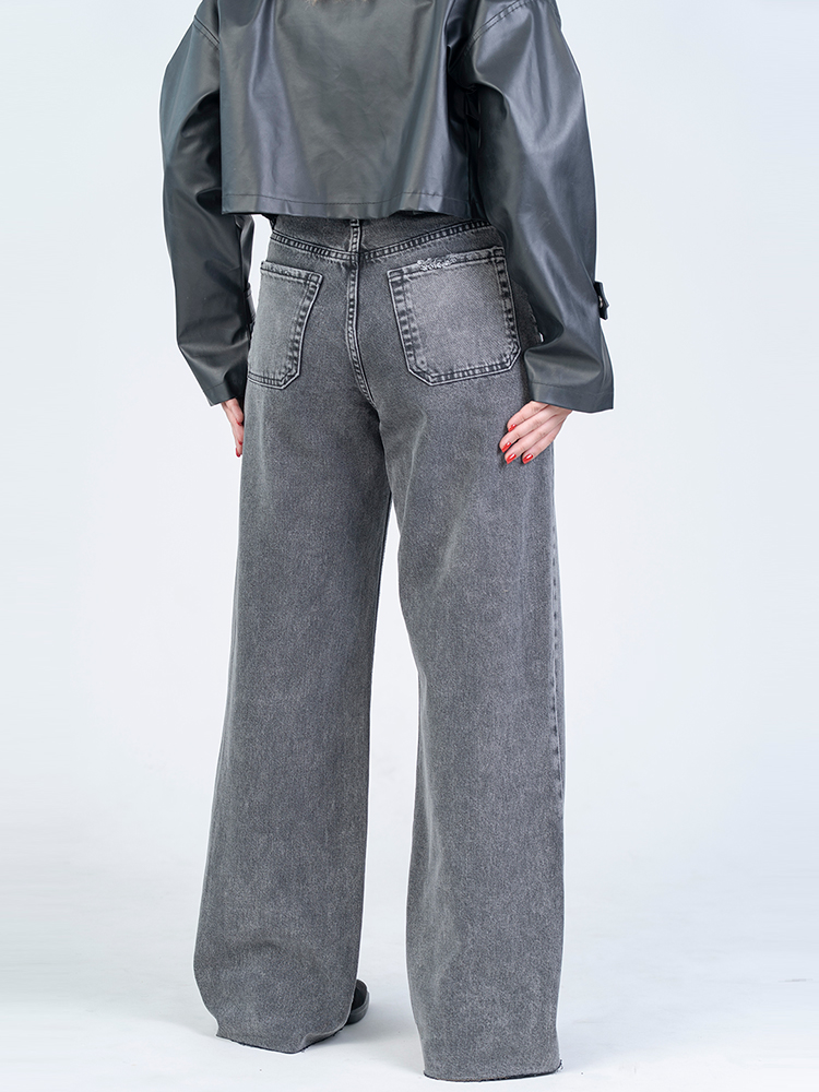 شلوار جین بگ قد 115 دمپا کات مشکی کد 22729
