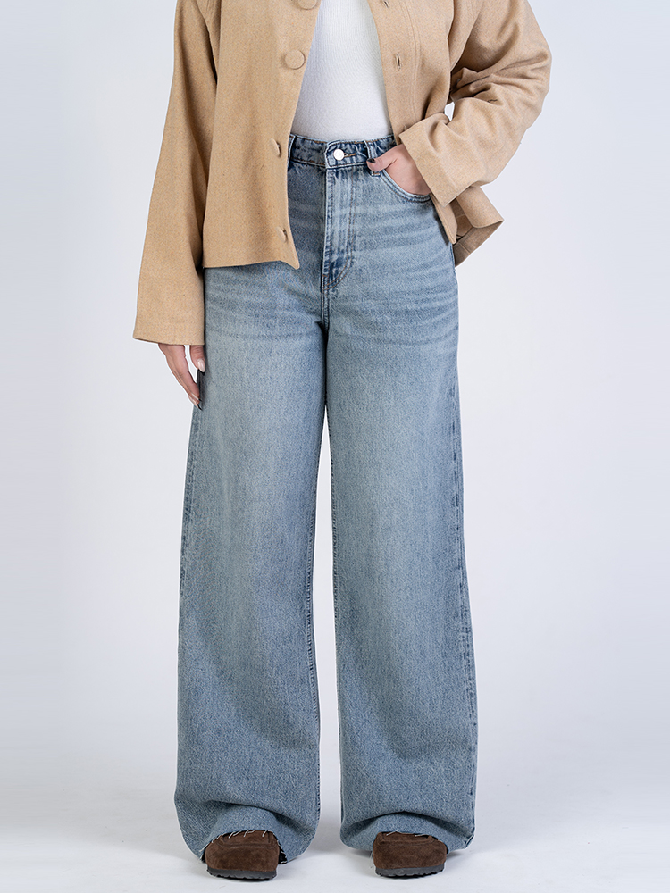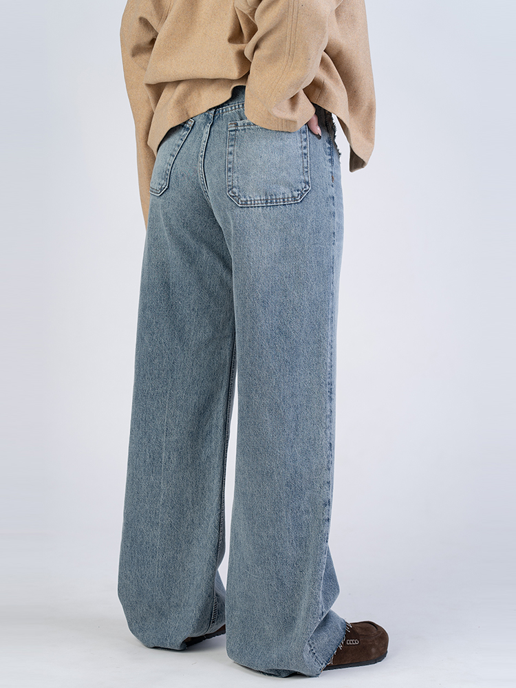 شلوار جین بگ دمپا کات قد 115 کد 22384 با فرم آزاد و جزئیات متفاوت، گزینه‌ای خاص برای استایل‌های ترندی است.