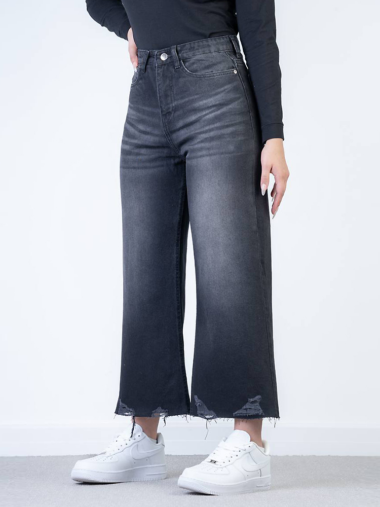 دمپای کاتشده در کنار رنگ مشکی باعث شده این شلوار بسیار شیک، مدرن و قابل ست شدن با انواع آیتمهای کمد لباس باشد. از تیشرتهای اورسایز گرفته تا هودی و کتانیهای اسپرت، همگی با این مدل بسیار جذاب خواهند بود.