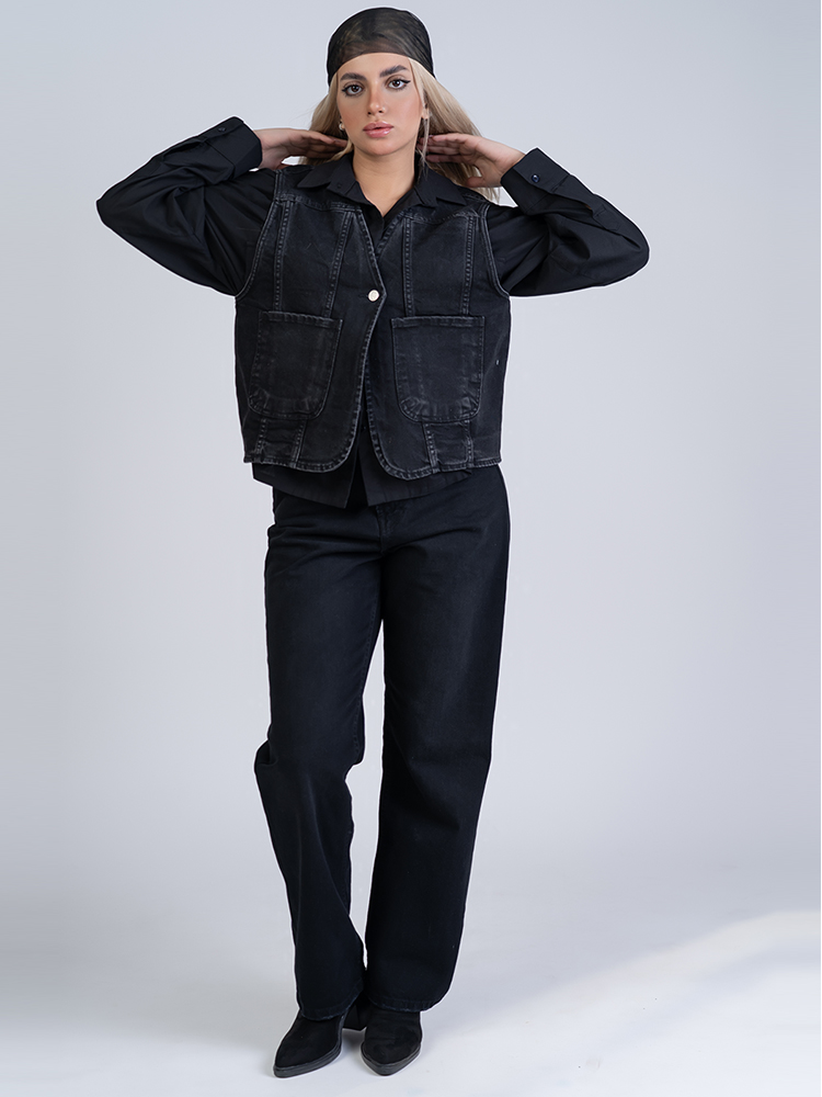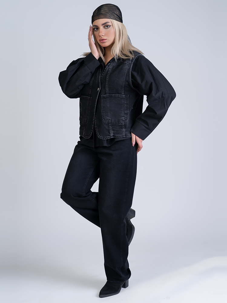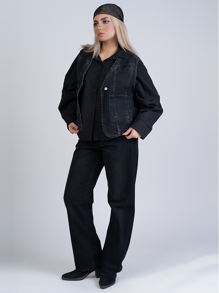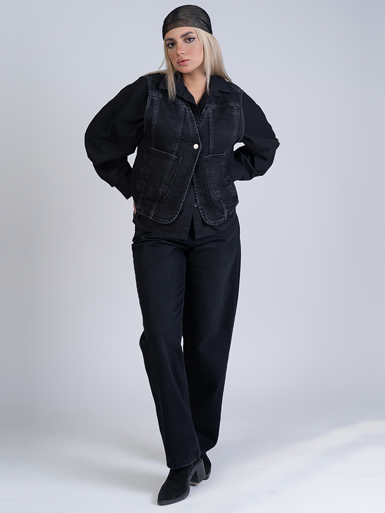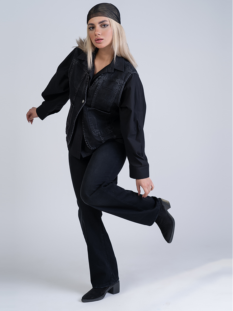 شلوار جین رگولار قد 110 مشکی کد 22669