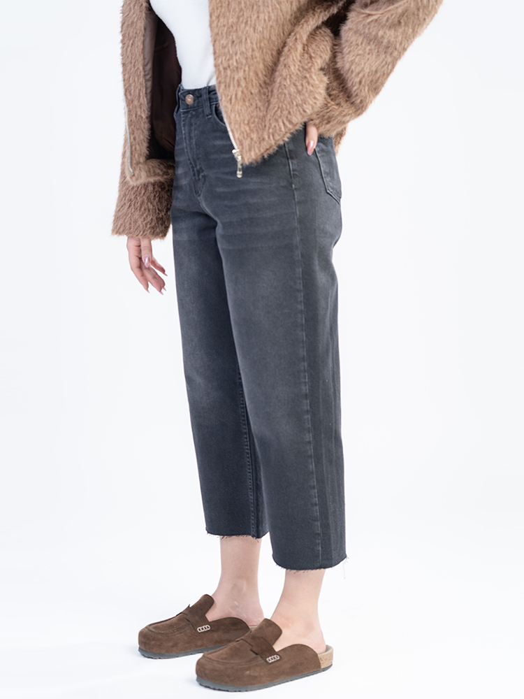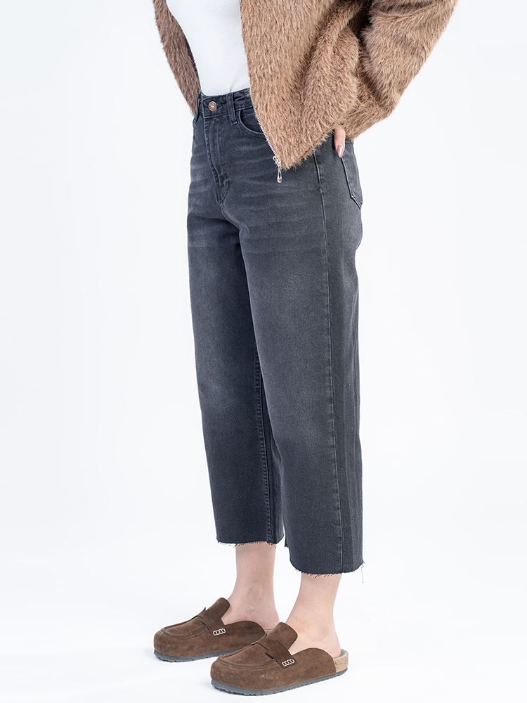 شلوار جین رگولار قد 90 دمپا کات مشکی کد 22696