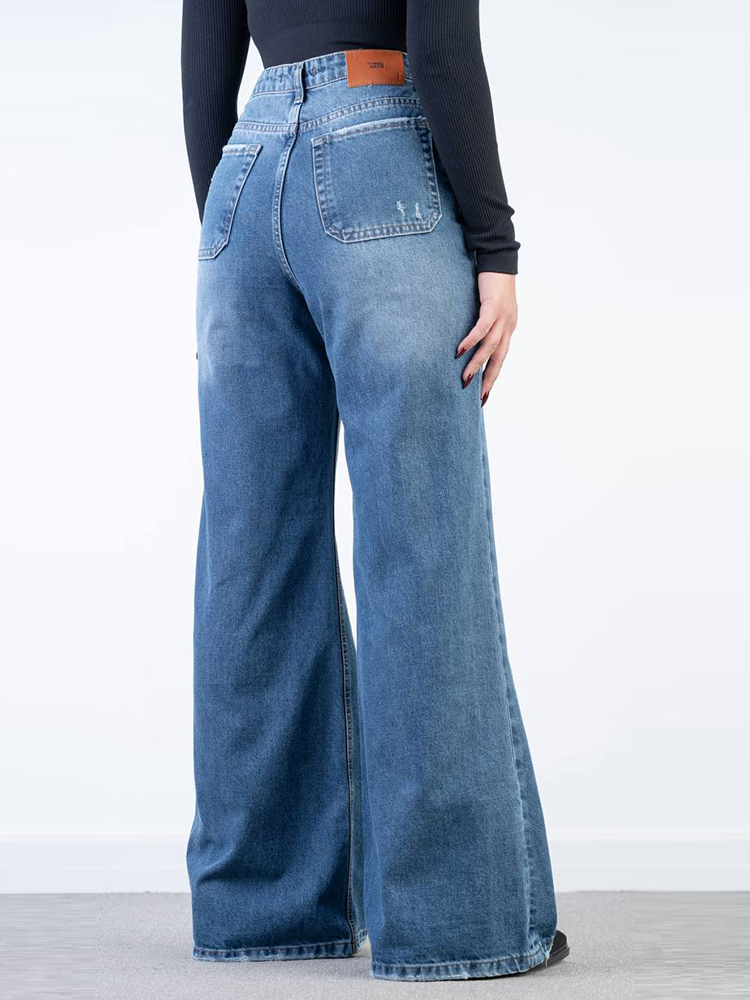 شلوار جین شافل قد 110 کمر اریب کد 21685