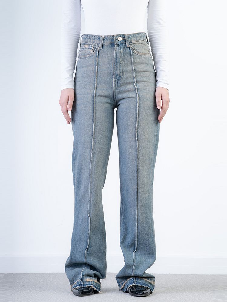 شلوار جین فلرلاین دمپا بشکاف قد 110 کد 21537 ترکیبی از راحتی و استایل مدرن را ارائه می‌دهد. فرم فلر از بالا تا پایین آزاد بوده و آزادی حرکت کامل فراهم می‌کند.