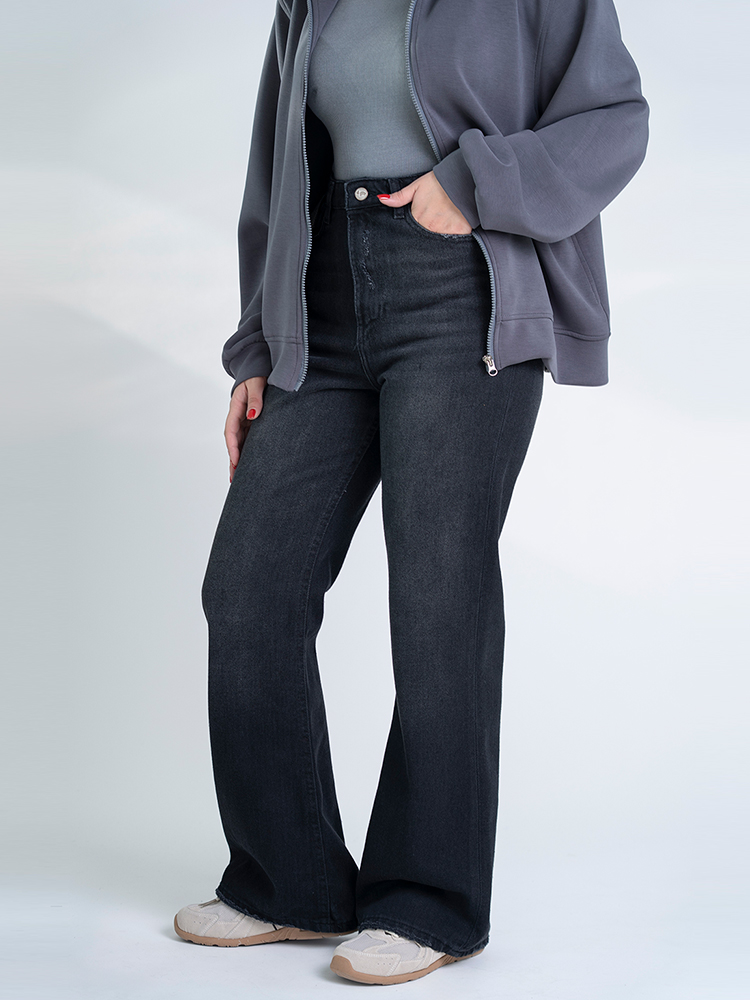 شلوار جین فلر قد 110 مشکی کد 22293 نمونهای از طراحی مدرن و دقیق جین زنانه است که فرم فلر، دمپا گشاد و قد بلند را با هم ترکیب کرده است. برش فلر باعث میشود شلوار از ران تا پایین پا فرم آزاد و جذابی داشته باشد، در حالی که حجم کنترلشده ایستایی حرفهای ایجاد میکند.