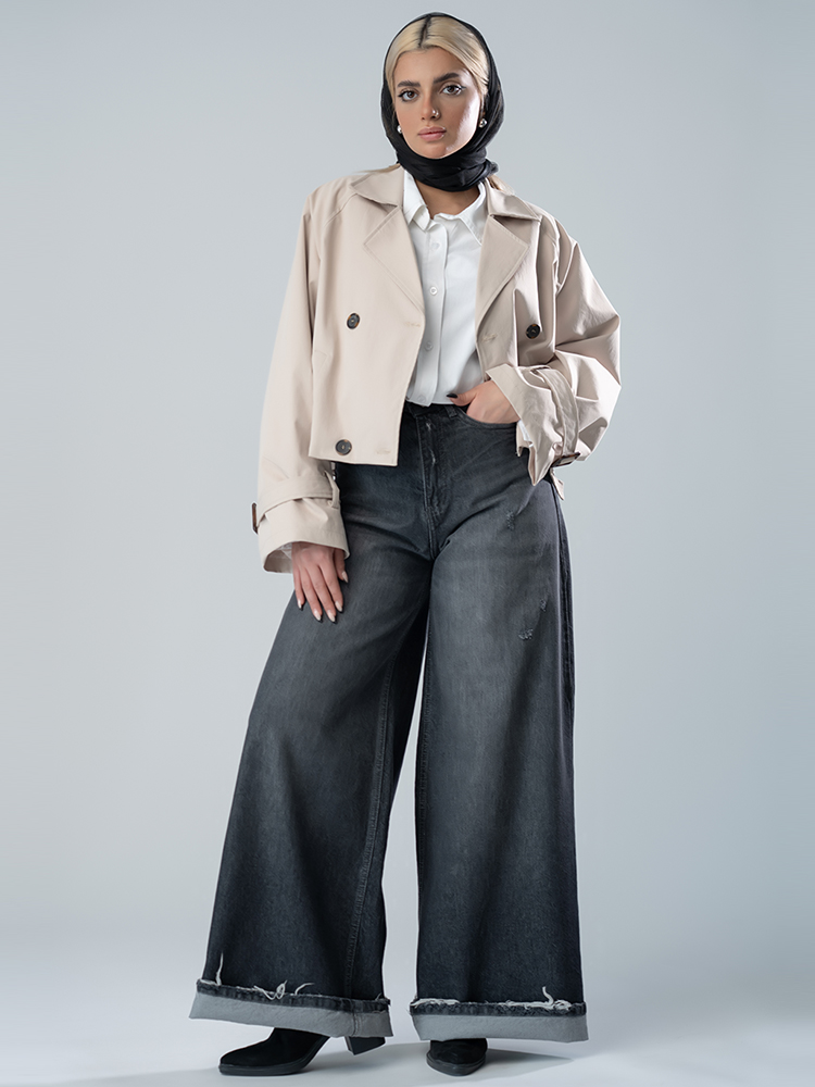 شلوار جین فول بگ قد 90 مشکی کد 19668