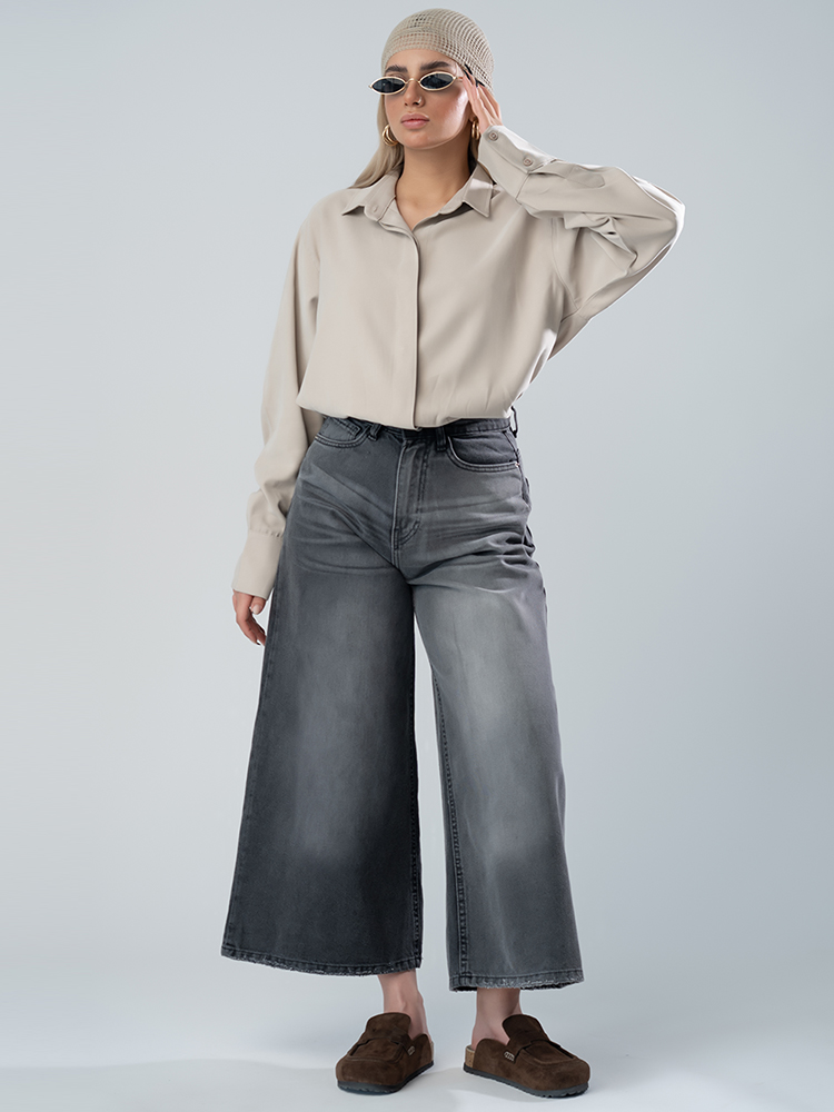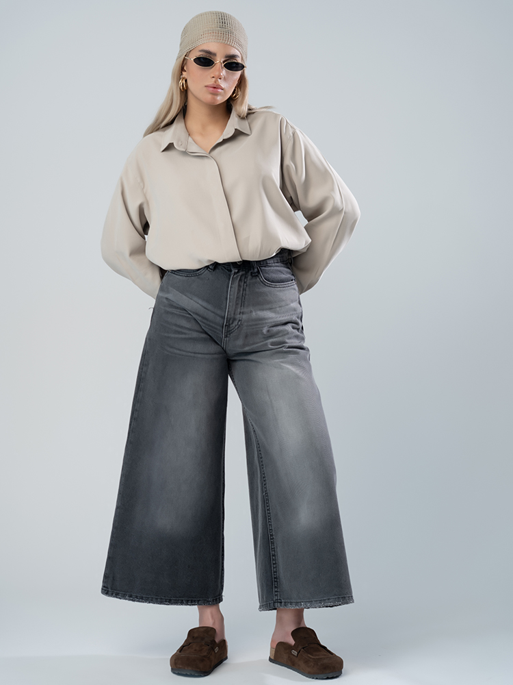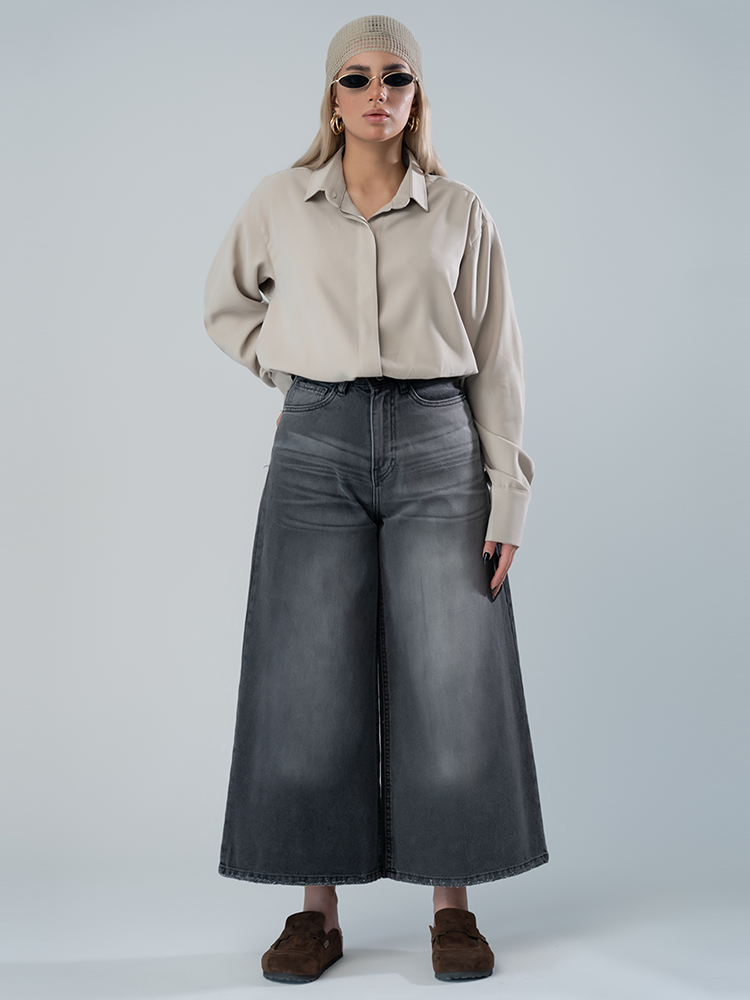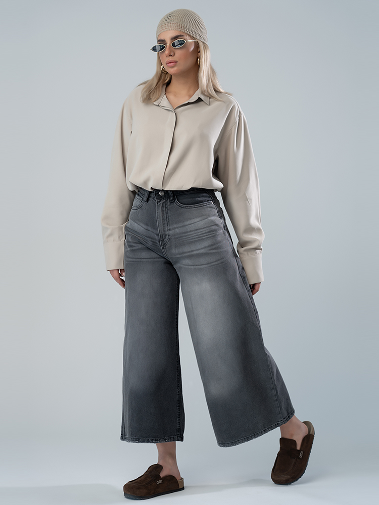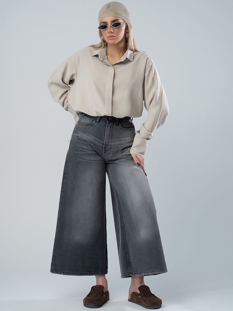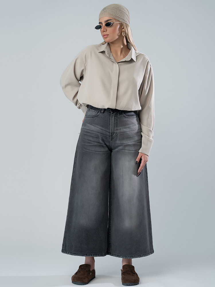 شلوار جین فول بگ قد 90 مشکی کد 19668