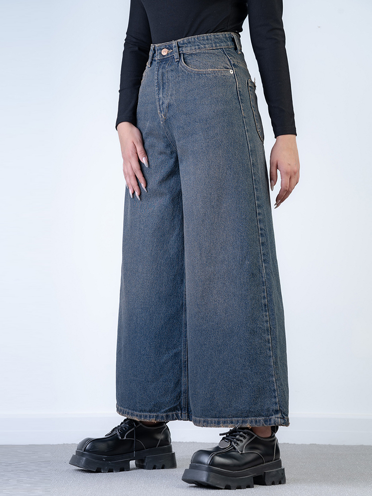 شلوار جین فول بگ کراپ قد 90 کد 21104 با طراحی آزاد و فرم کراپ، گزینه‌ای ترندی و راحت برای استایل روزمره است. این مدل به راحتی با انواع کفش‌های اسپرت و کتانی ست می‌شود.