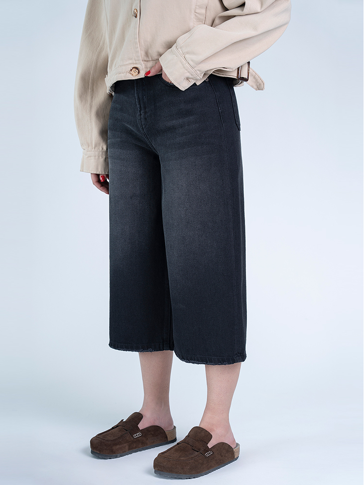 شلوار جین کراپ واید لگ قد 85 مشکی کد 21784