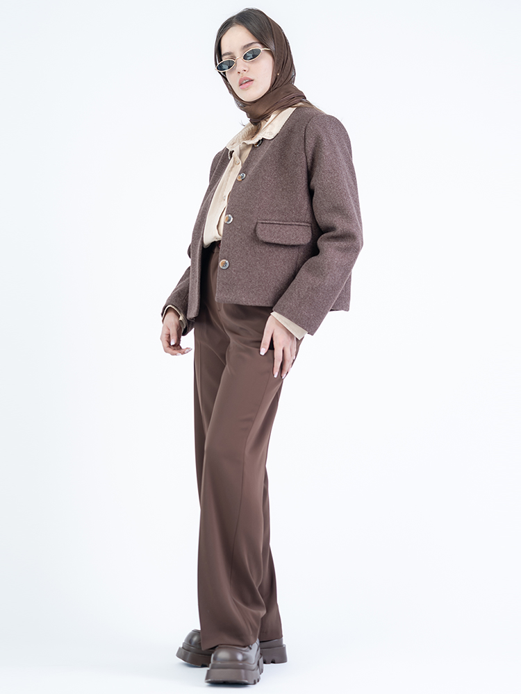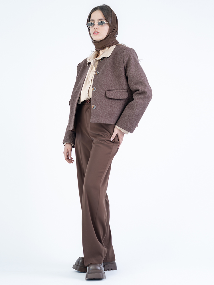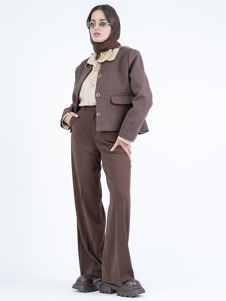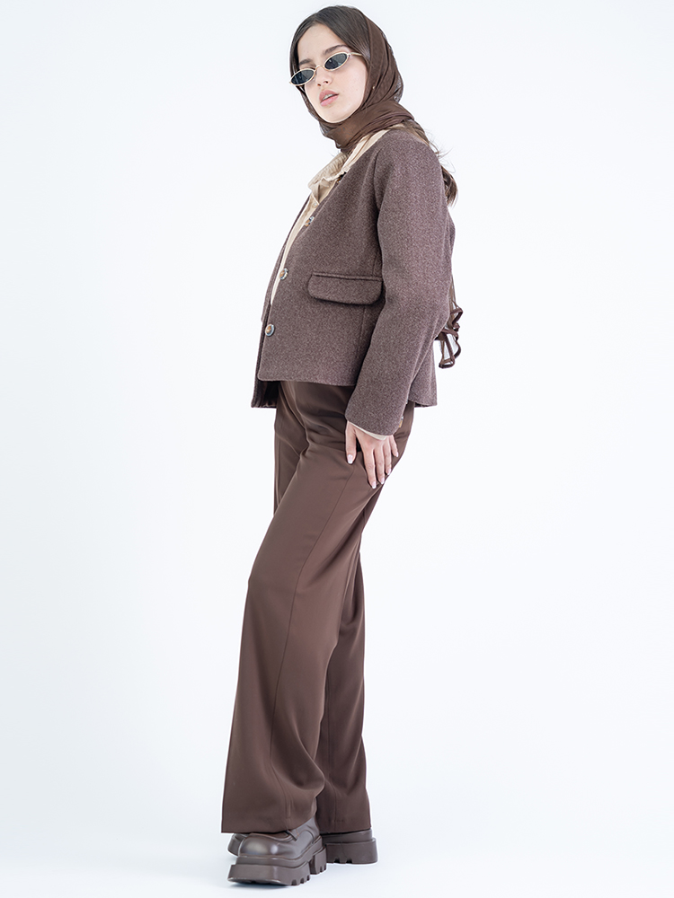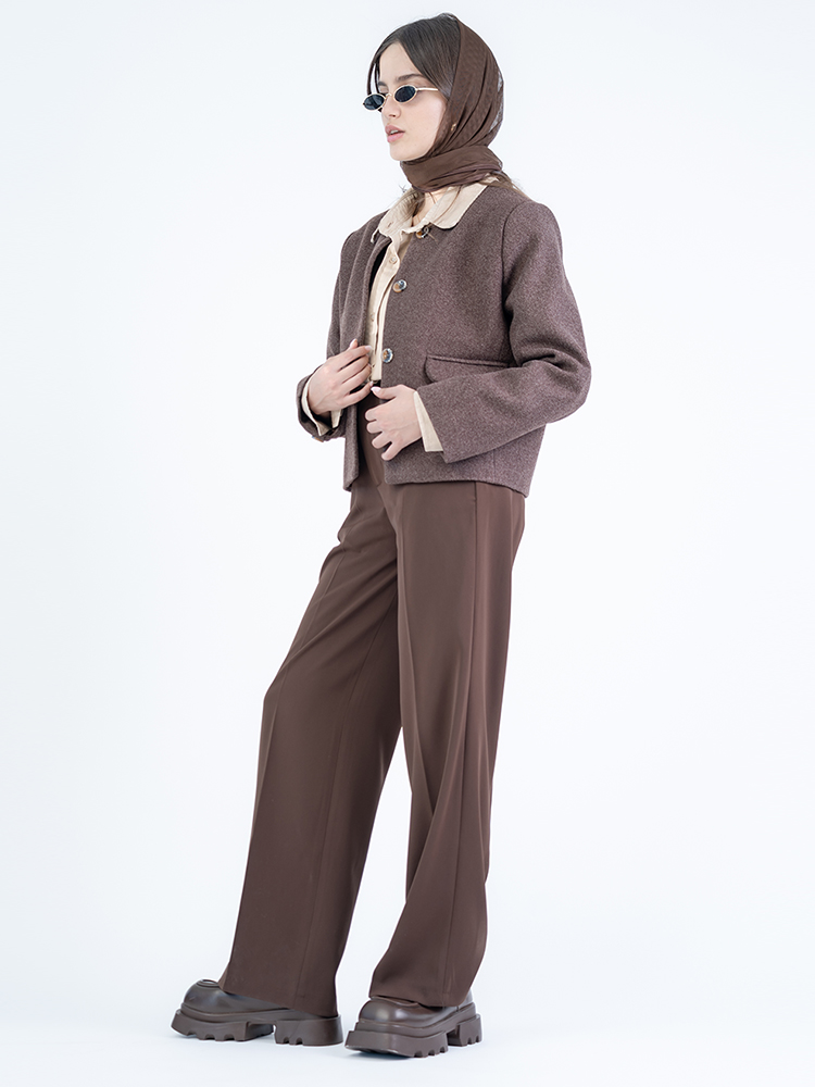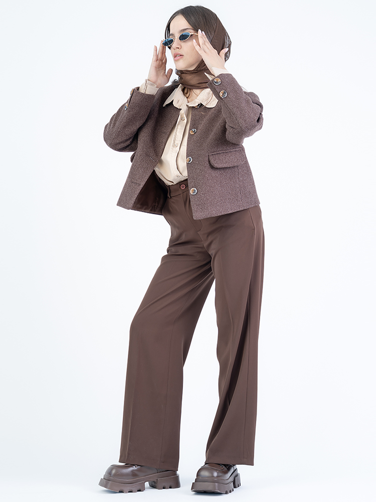 شلوار پارچه ای بگ قد 110 گلکسی قهوه ای کد 2635