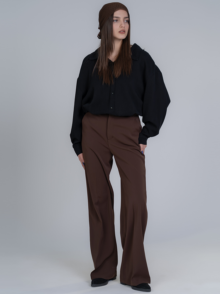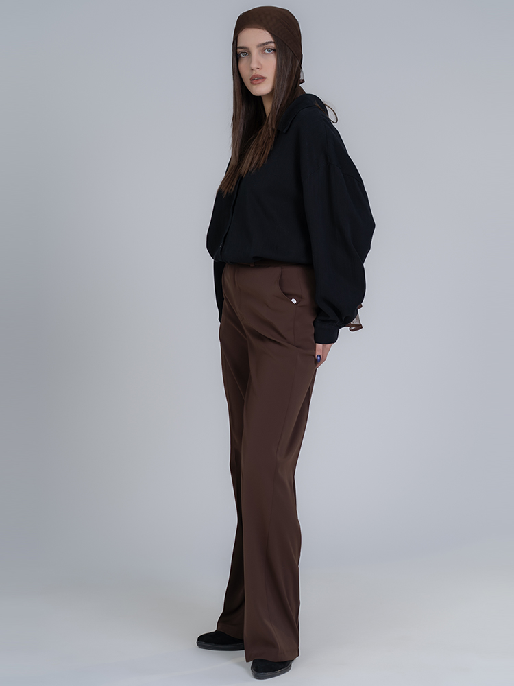 شلوار پارچه ای بگ قد 110 گلگسی قهوه ای تیره کد 23051