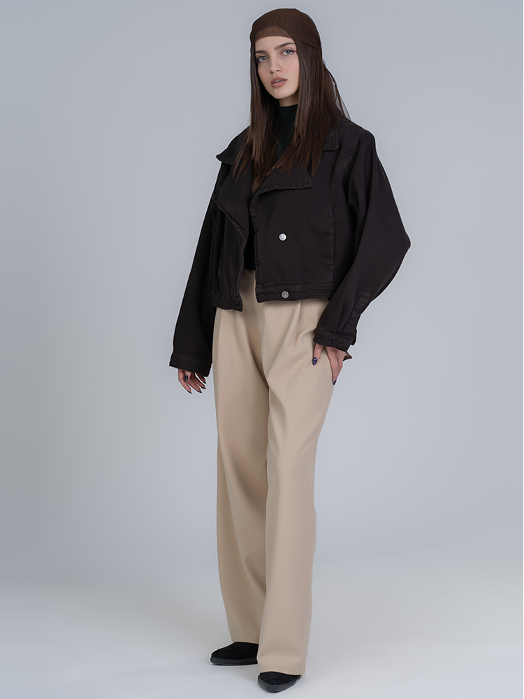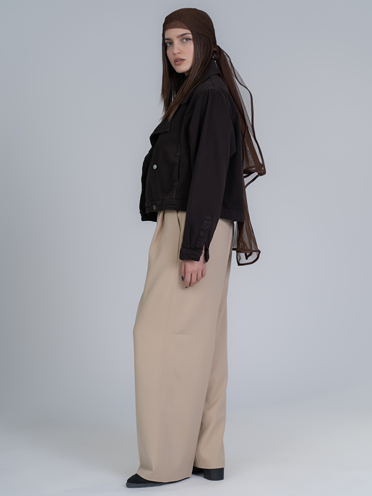 برش واید لگ با پاچه‌های گشاد سیلوئتی باز و متجدد خلق می‌کند که به‌خوبی انواع بالاتنه‌ها را تکمیل می‌کند؛ قد 110 جلوه‌ای کشیده و متوازن به ظاهر می‌دهد و امکان ست با کفش‌های پاشنه‌دار یا کتانی را فراهم می‌آورد. رنگ کرم ظاهری همه‌کاره و شیک به استایل می‌بخشد.