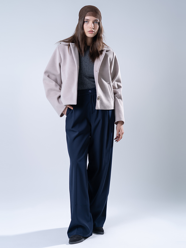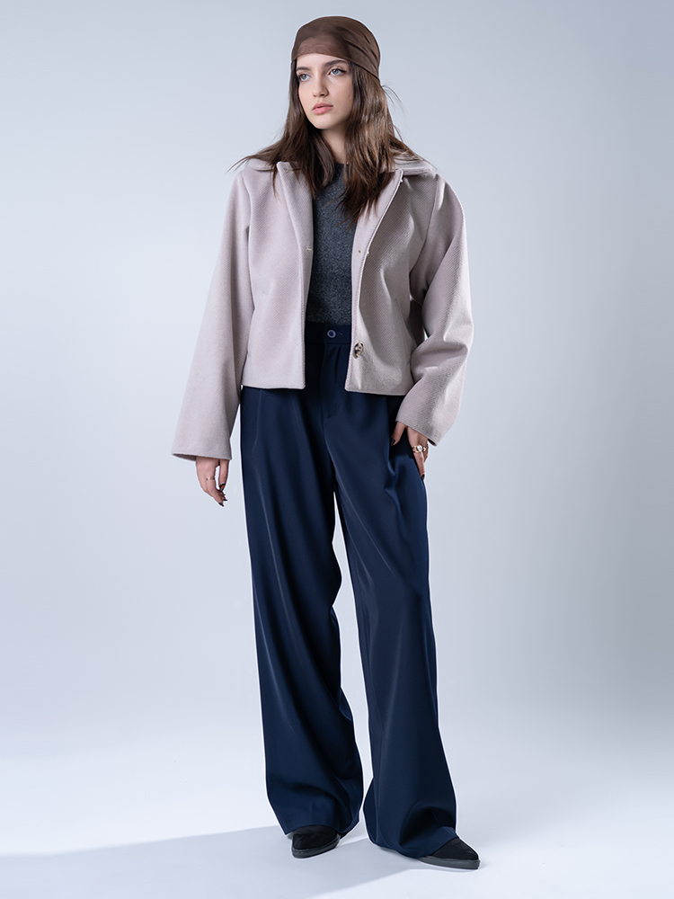 پارچه انتخابی برای این کد (۲۲۷۹۷)، ستون فقرات این طراحی است. پارچهای با وزن مناسب که نرم است و با بدنتان حرکت میکند. این پارچه نه زیاد نازک است و نه خشک، بلکه افت و اسلوبی مجلسی و درعینحال راحت به شلوار میبخشد. رنگ سرمهای تیکال —که طیفی بین سرمهای و مشکی با رگهای سرد است— عمق و غنای خاصی به محصول داده و ست کردن آن را آسان میکند.