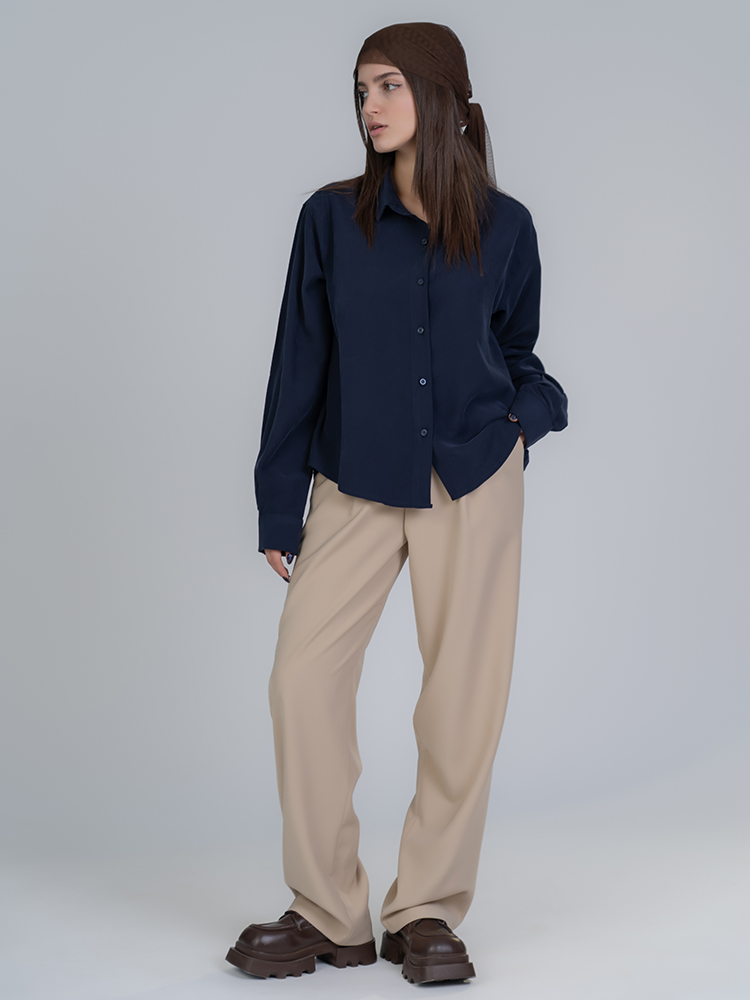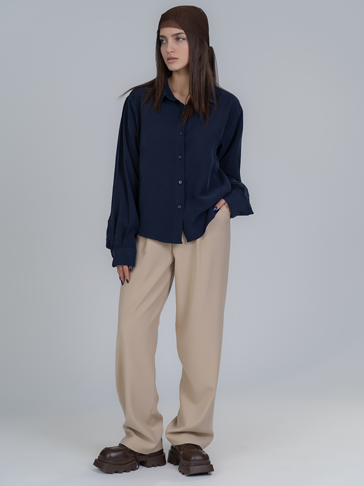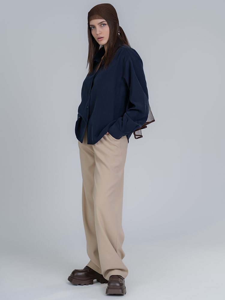 برش واید لگ و پاچههای گشاد سیلوئتی باز و مدرن خلق میکنند که بهخوبی انواع بالاتنهها را تکمیل میکند؛ قد 110 جلوهای کشیده و متعادل به استایل میبخشد و امکان نمایش کفشهای پاشنهدار یا کتانی را فراهم میآورد. رنگ کرم طیفهای متنوع ست کردن را ساده میکند.