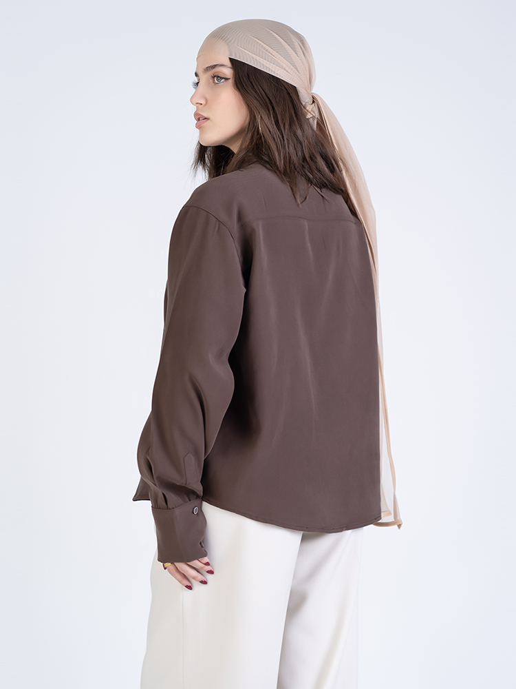 شومیز پارچه‌ای اوشن کد 22420 با رنگ قهوه‌ای گرم و دلنشین، انتخابی شیک برای استایل‌های روزمره و نیمه‌رسمی است. این رنگ به‌راحتی با آیتم‌های مختلف ست می‌شود و حس آرامش و مینیمال به استایل می‌دهد.