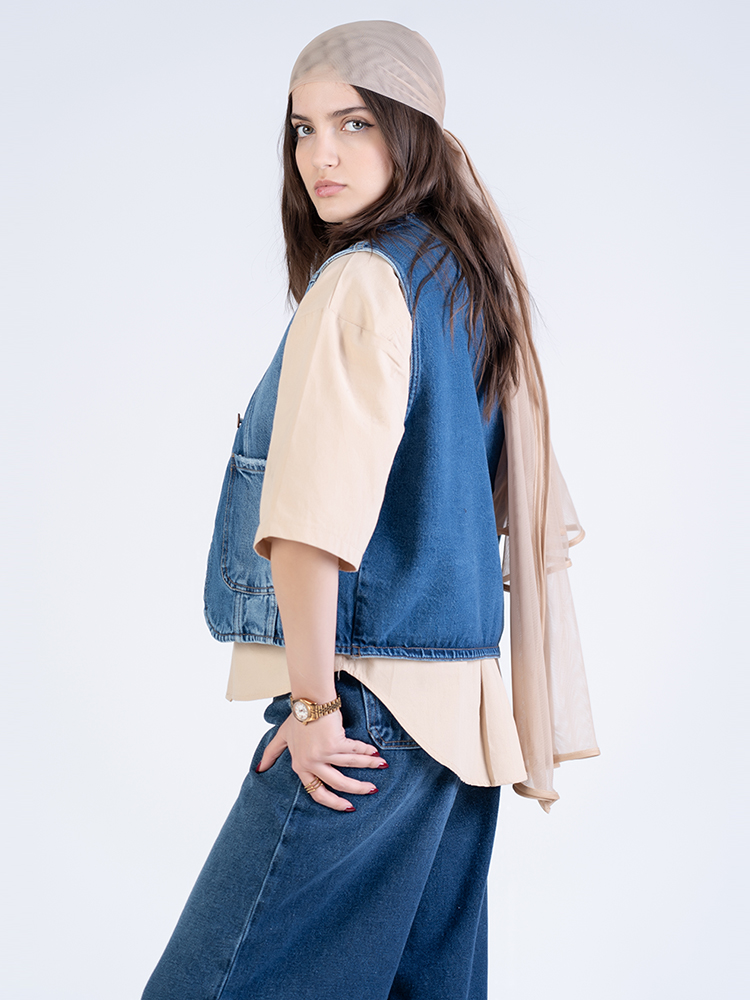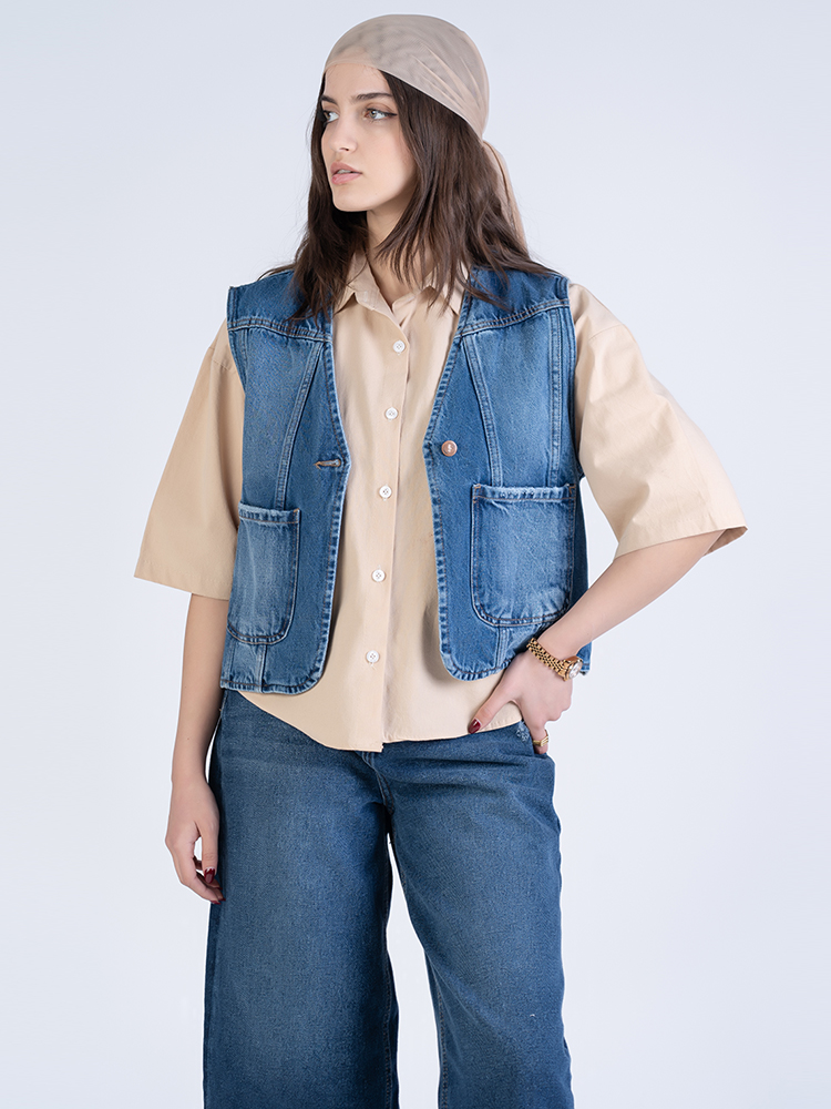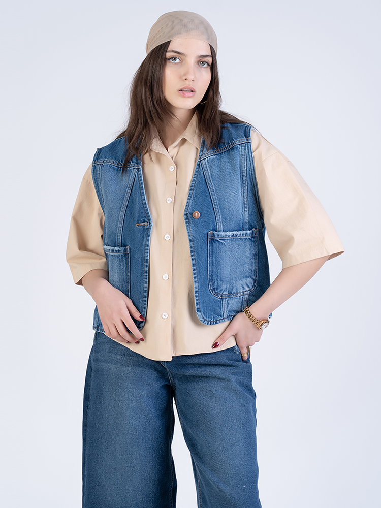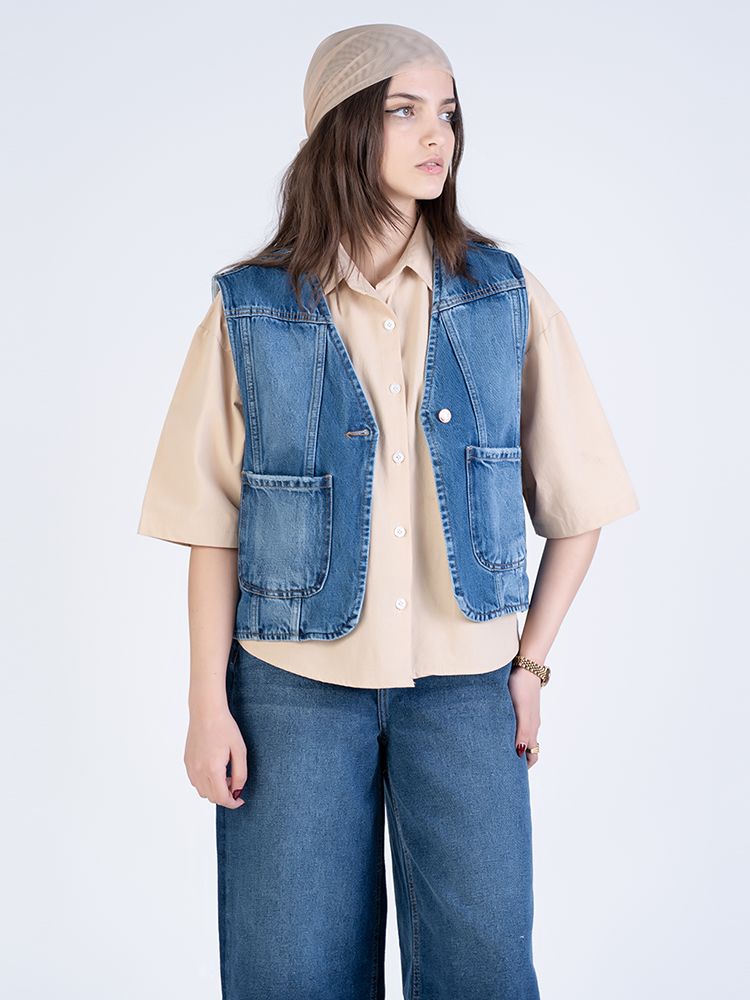 جنس جین باکیفیت این مدل، ایستایی خوبی روی تن ایجاد می‌کند و در عین حال راحتی لازم برای استفاده‌ی طولانی‌مدت را دارد. این وست به‌خوبی با شلوار جین بگ، واید لگ یا حتی شلوارهای پارچه‌ای ست می‌شود و به شما اجازه می‌دهد ترکیب‌های متنوع و به‌روز بسازید.