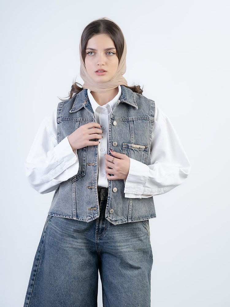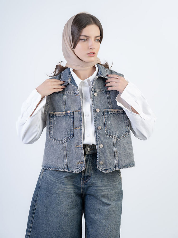 این کت وست جین با هر چیزی ست میشود؛ از تیشرت سفید ساده گرفته تا شومیزهای فانتزی. برای روزهای گرم سال عالی است و بدون زحمت، استایل شما را خاص و مدرن میکند.